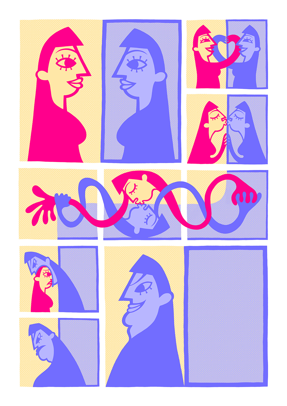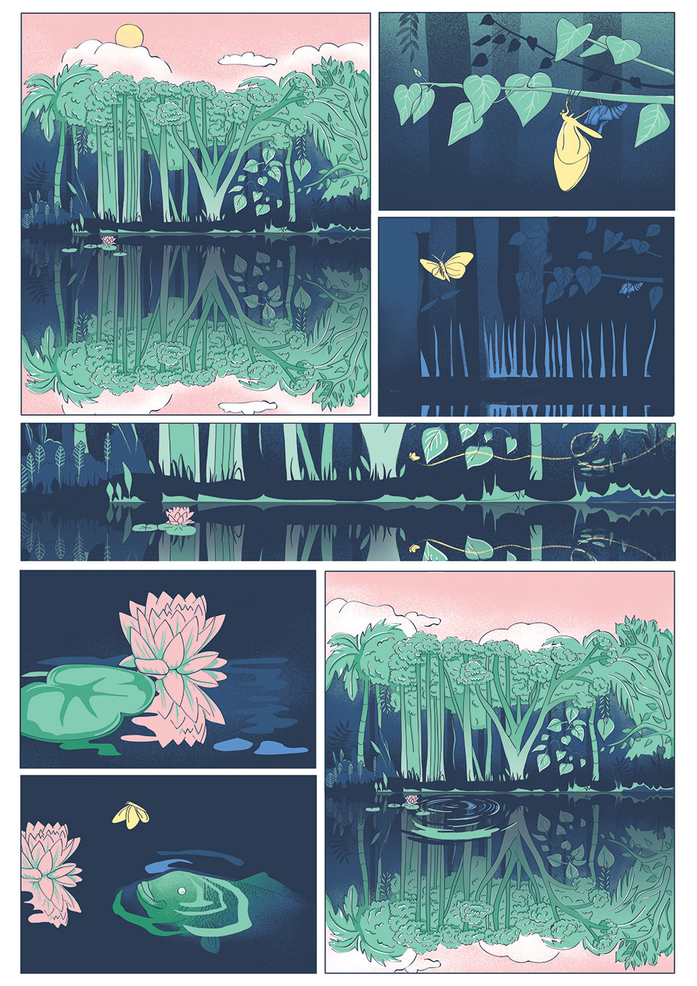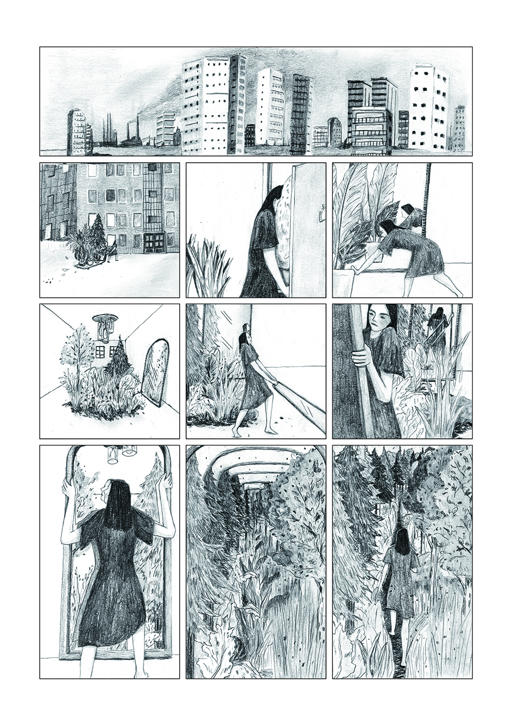 Les visiteurs et visiteuses de l’exposition Nouveau talent, réunissant tous les projets reçus à l’occasion du concours de cette année, ont désigné la planche de Séverine Moser comme gagnante du prix du public. Il a été difficile de rendre justice à la planche originale, puisque toutes les cases ont été collées sur une planche en miroir !