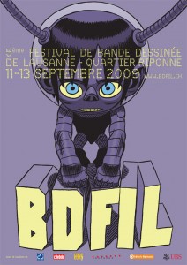 BD-FIL marque, pour sa 5ème édition, un changement de taille avec un nouveau lieu d’organisation. Suite à sa rénovation, le Flon, «quartier originel» du Festival, ne peut plus accueillir la manifestation. Cette dernière prendra désormais place dans le quartier de la Riponne. Le déménagement permet l’utilisation d’emplacements d’exposition spectaculaires tels que l’Espace Arlaud ou l’ancien cinéma Romandie. Il impose également des solutions momentanément peu heureuses pour le programme cinéma ou l’espace dédicaces. Le public, venu dans un nombre quasi identique à 2008, apprécie et apprivoise sous le soleil les nouveaux lieux en relevant une visibilité et une compréhension plus abouties de l’événement.