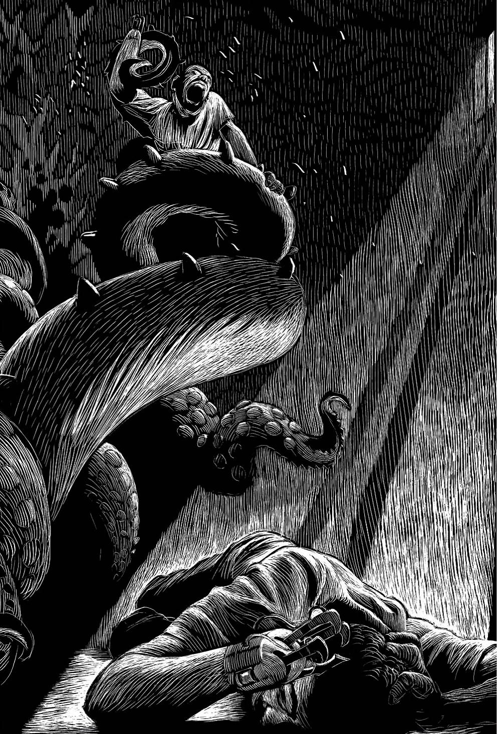 * La carte à gratter est une technique de dessin consistant à utiliser un carton spécial recouvert d’une couche d’encre de Chine noire que l’on gratte pour faire apparaître le blanc. Le résultat offre une apparence de gravure aux effets de lumières saisissants.