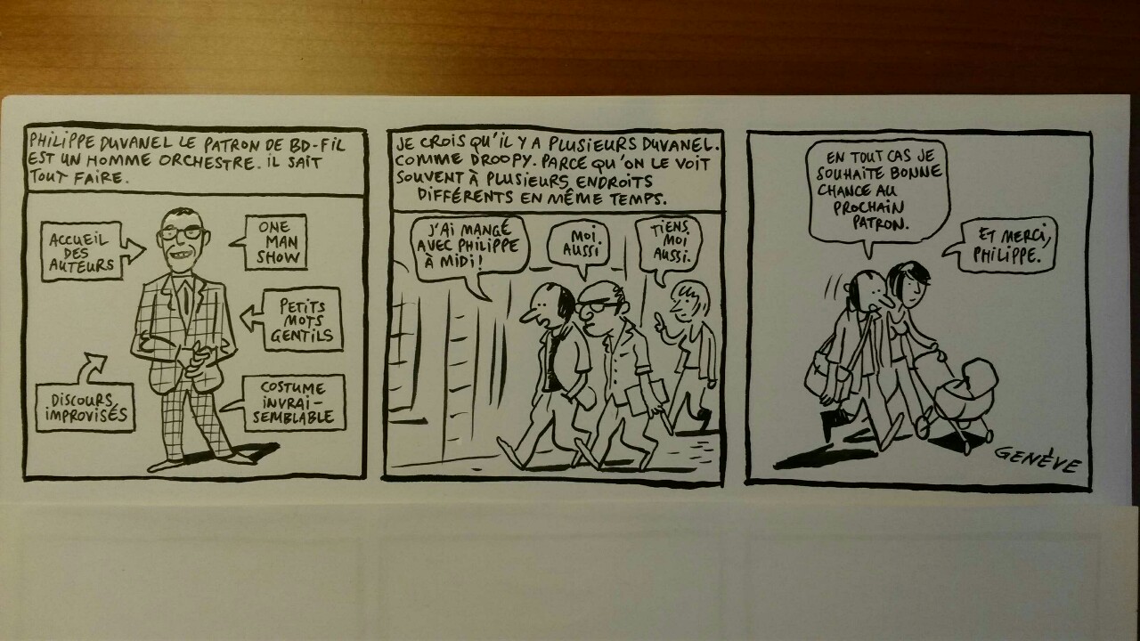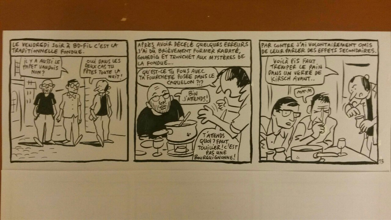 Les petites chroniques du 10e : les auteurs genevois Pierre Wazem et Ibn Al Rabin croquent, avec les contributions d’autres auteurs du Festival, les dessous et dessus de la 10e édition de BD-FIL en direct. A découvrir à l’Espace Romandie et sur :