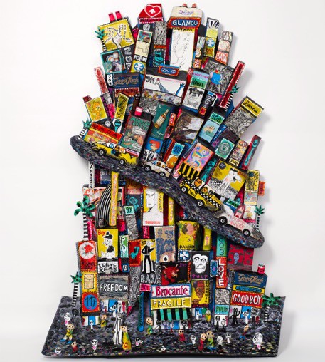 Dans BASTOMANIA la mégapole est à la fête. Les artistes biennois présentent un travail à quatre mains, véritable fourmilière d’images et de citations de héros de bande dessinée, de personnages issus de livres d’enfants, de la publicité ou encore des œuvres d’artiste. Ils portent un regard décalé sur notre urbanisation anarchique et organique.