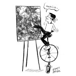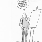 En équilibre instable et les yeux bandés, François Ayroles dessine facilement et sans les mains. Baladi de son côté, dans les meilleures conditions du monde, dessine douloureusement, serrant inexplicablement son crayon entre l’index et le majeur. Pour vous, ils ont accepté la confrontation historique des deux méthodes…